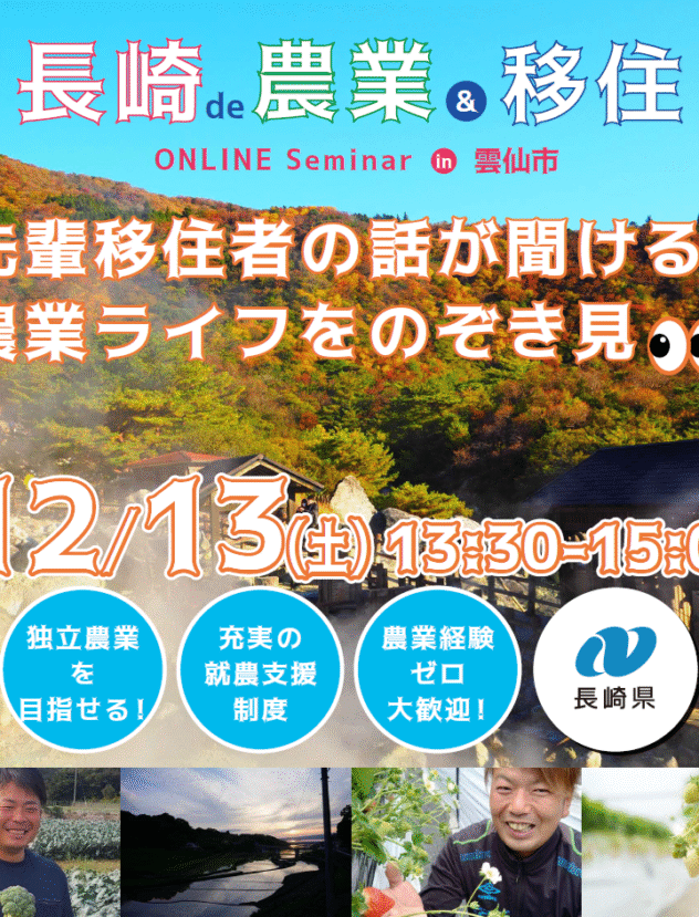【終了】ながさきde農業IJUオンラインセミナーin雲仙市~雲仙普賢岳のふもとで農業を語ろう!!~