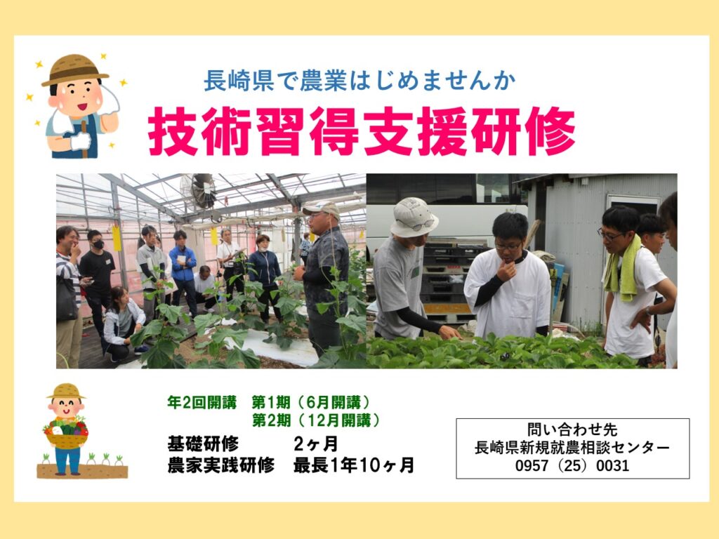 長崎県新規就農相談センターでは、令和8年度技術習得支援研修生を募集しています。